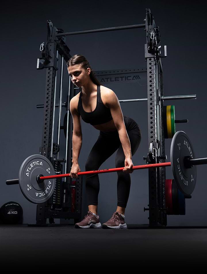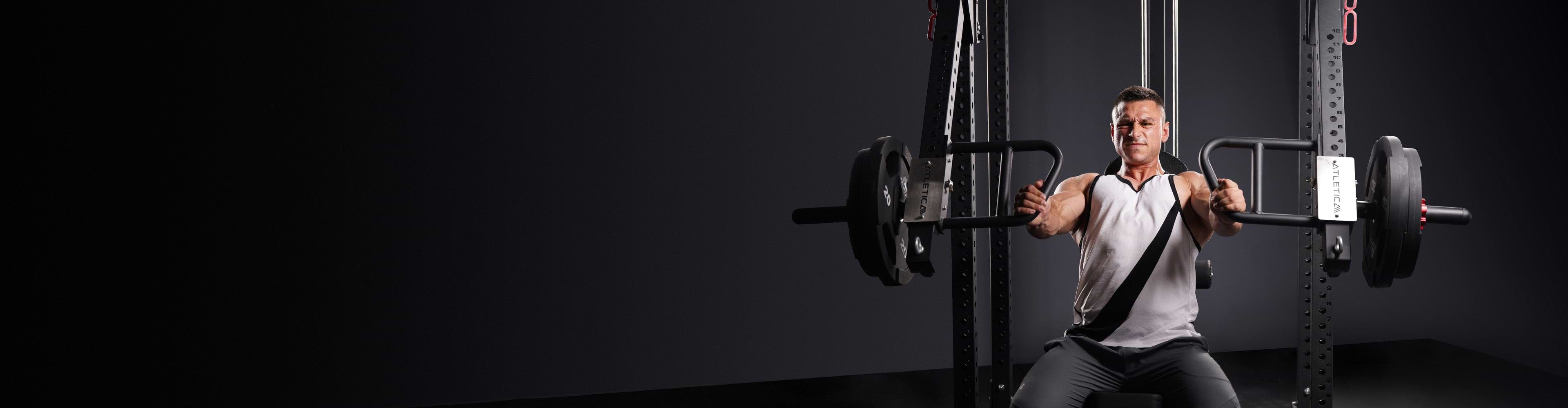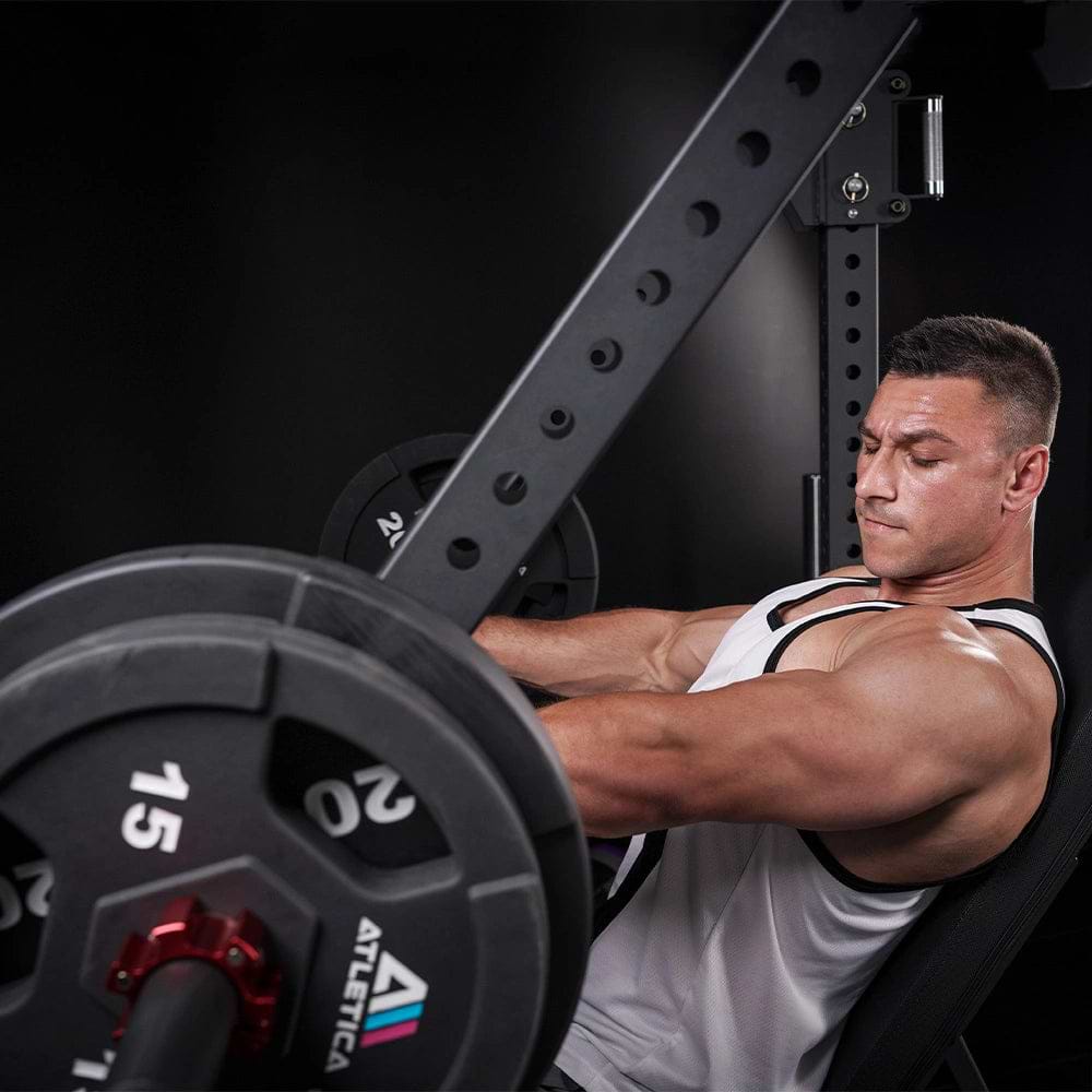 R7 Power Racks mit Plate Load sind Krafttrainingsgeräte von ATLETICA, die mit einem Plattenladesystem ausgestattet sind. Dabei wird der Widerstand durch das Auflegen von Gewichtsscheiben erzeugt, was eine flexible Anpassung des Trainingsgewichts ermöglicht.