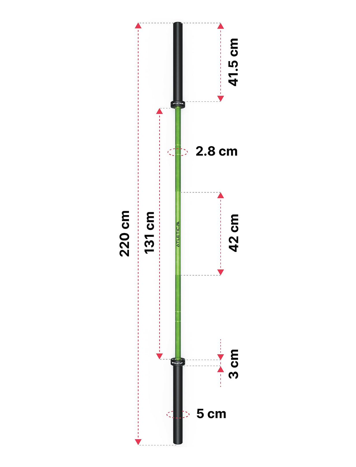 Klassiske mål på 2200 mm i længden, 20 kg i vægt og en grebdiameter på 28 mm. Den ideelle allround-vægtstang til vægtløftning, styrkeløft og funktionel træning i dit hjemmegym.