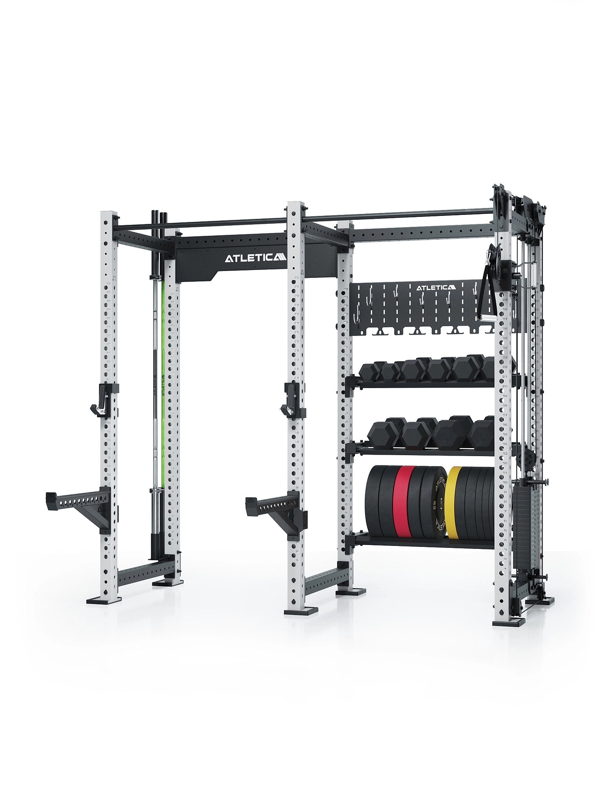 Fuldt udviklet power rack med en dybde på kun 93 cm, perfekt til boutique fitnesscentre og personlige træningsstudios.