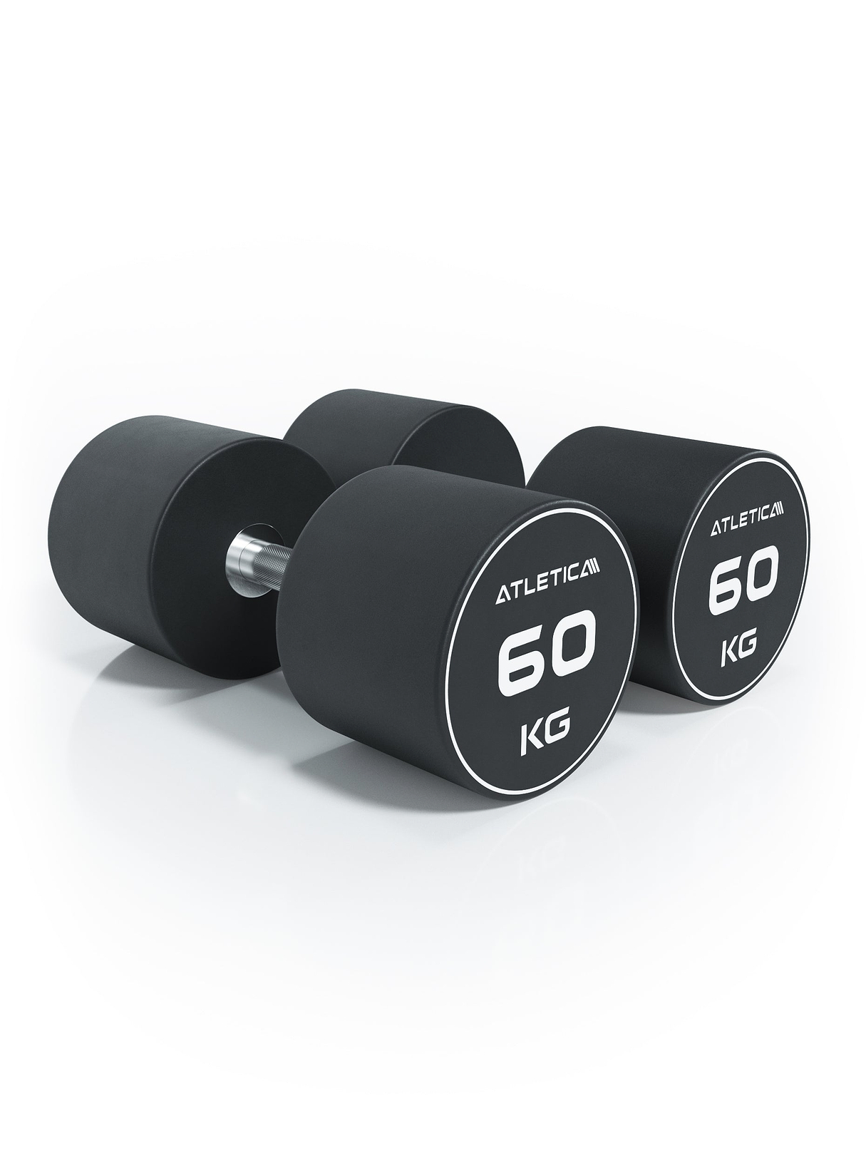 The 2 x 35 kg polyurethane dumbbells are clearly designed for serious strength athletes who don't want to compromise on their home gym. As is typical for Atletica, the workmanship is first-class: very cleanly crafted, solid, and coated with high-quality polyurethane—durable and floor-friendly.