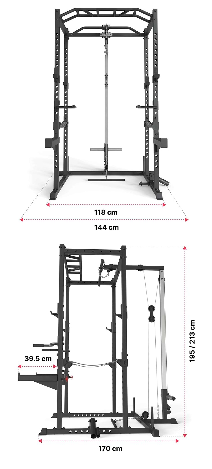 | Brazos de Seguridad (Spotter Arms) | Hasta 400kg por par, prueba de caída de peso probada |