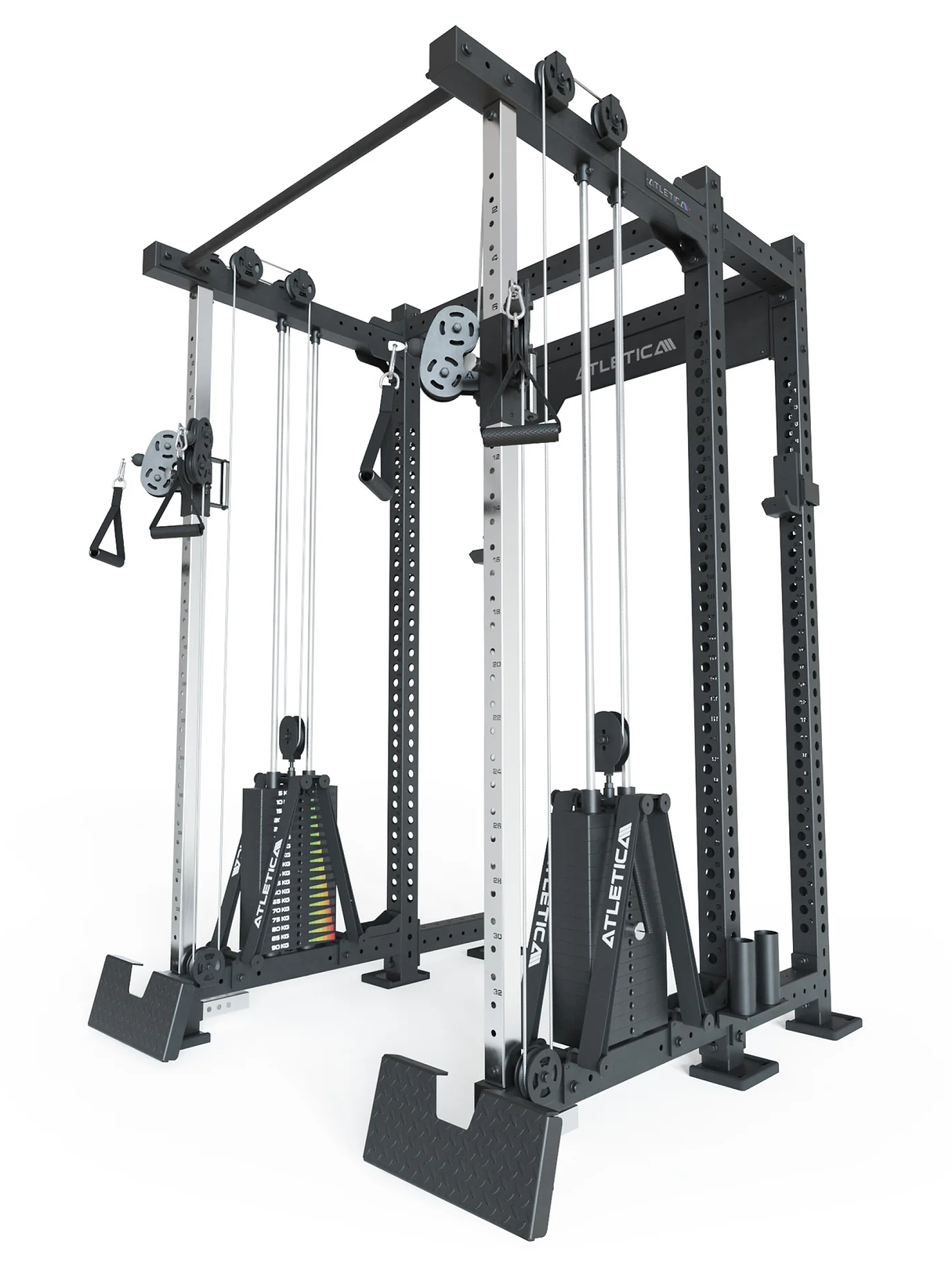 Vereint ein erstklassiges Power Rack mit einem hochwertigen Cable Cross, das zwei Personen gleichzeitig nutzen können.