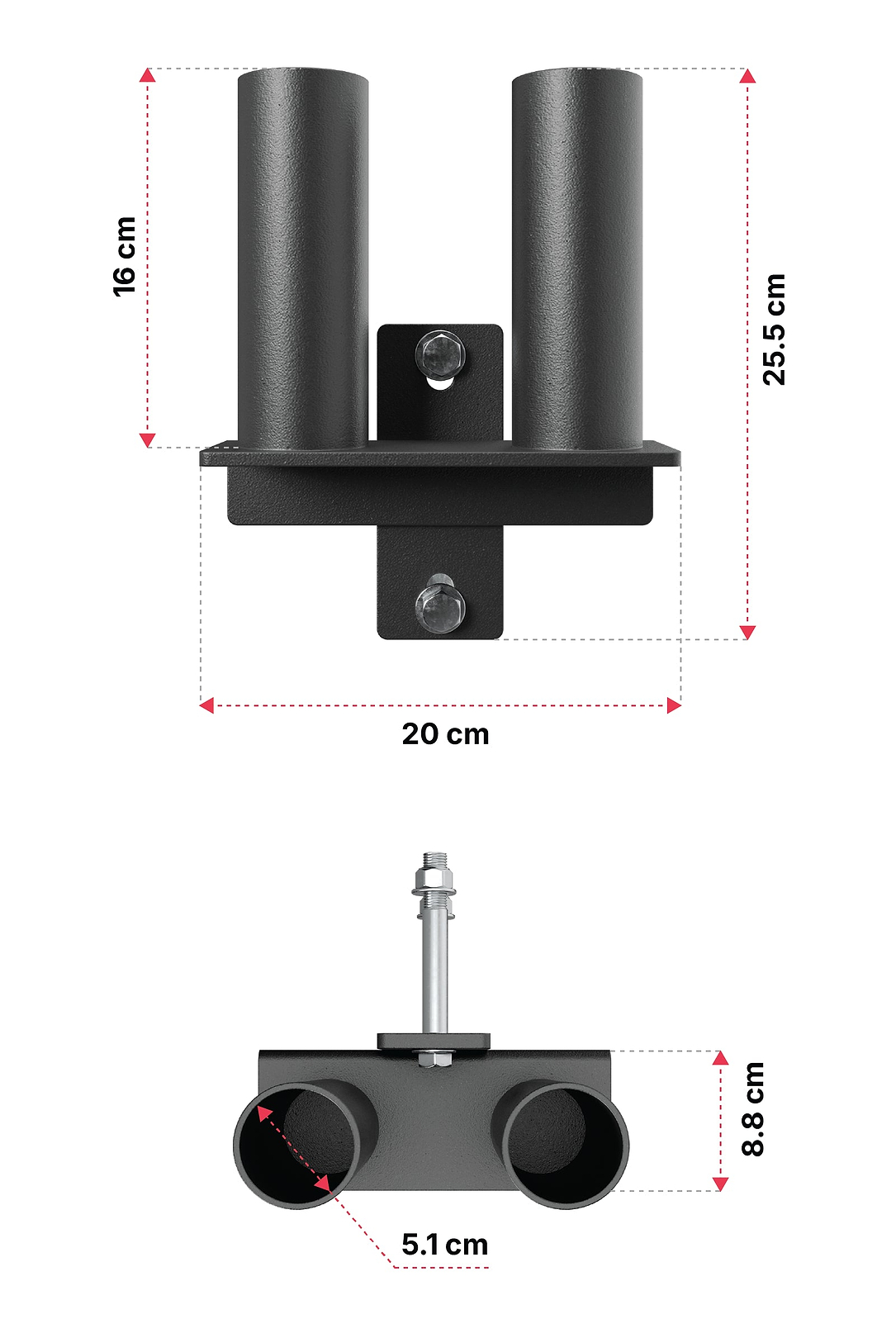 | Support double pour barre R8 | 1x |