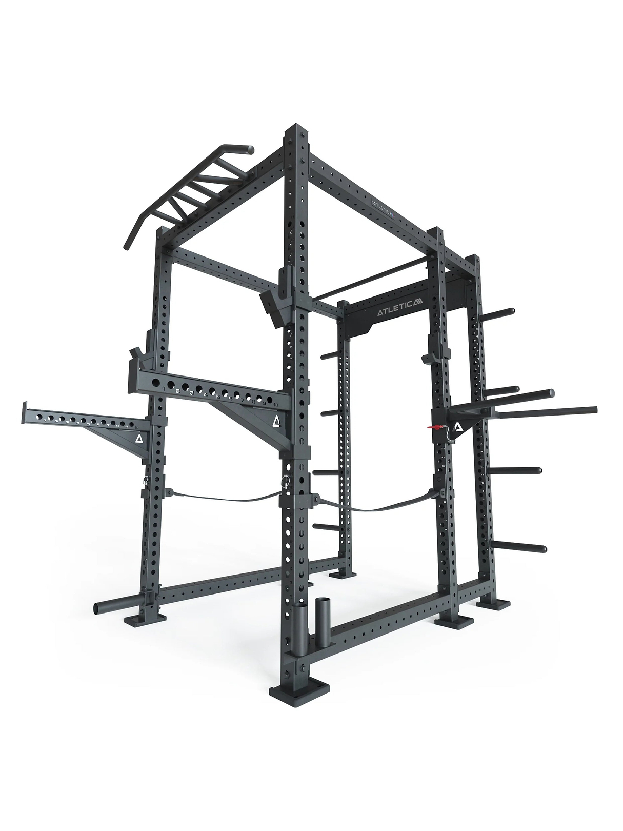 Inclusi Dip Station, Bracci Spotter, barra Multi-Grip per trazioni, Core-Trainer e Ganci a J rinforzati.