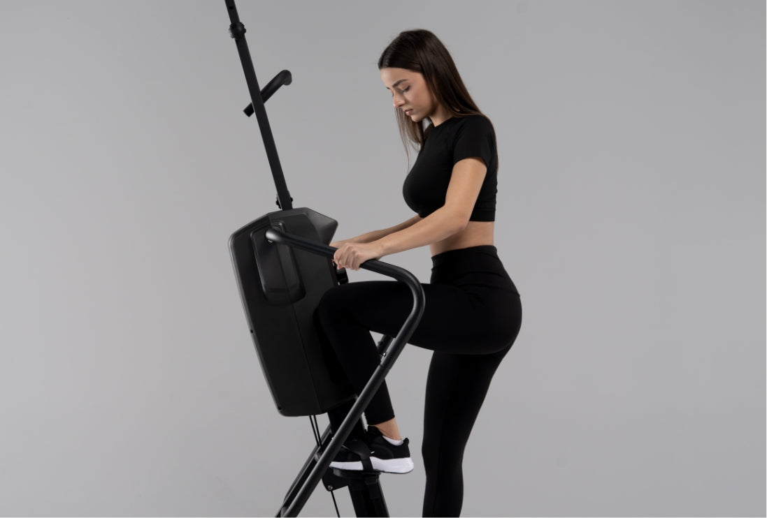 Per utilizzarlo come Stepper si utilizzano le maniglie fisse ai lati del dispositivo e ci si allena senza le braccia come puro allenamento Cardio e per le Gambe.