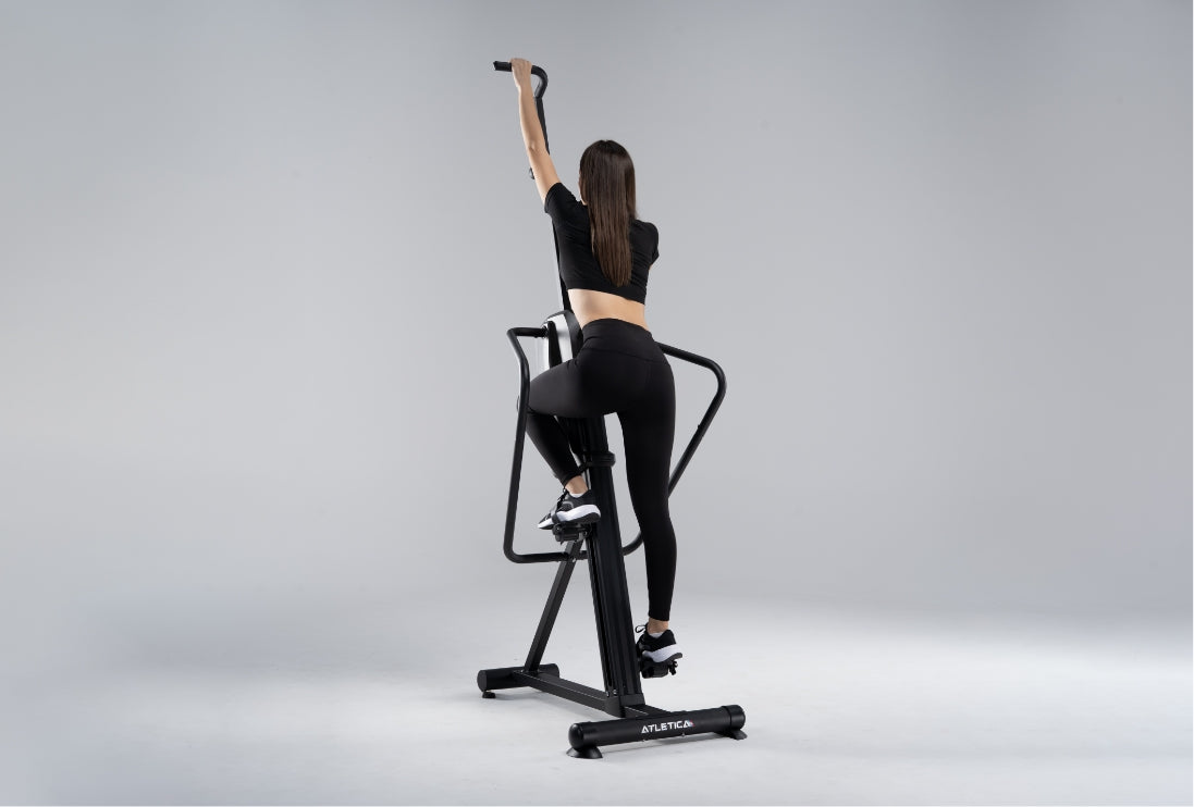 Arrampica in alto. Con questo dispositivo 2 in 1 bruci rapidamente ed efficacemente le tue calorie. Simulazione di arrampicata, variabile anche con sedia integrata.