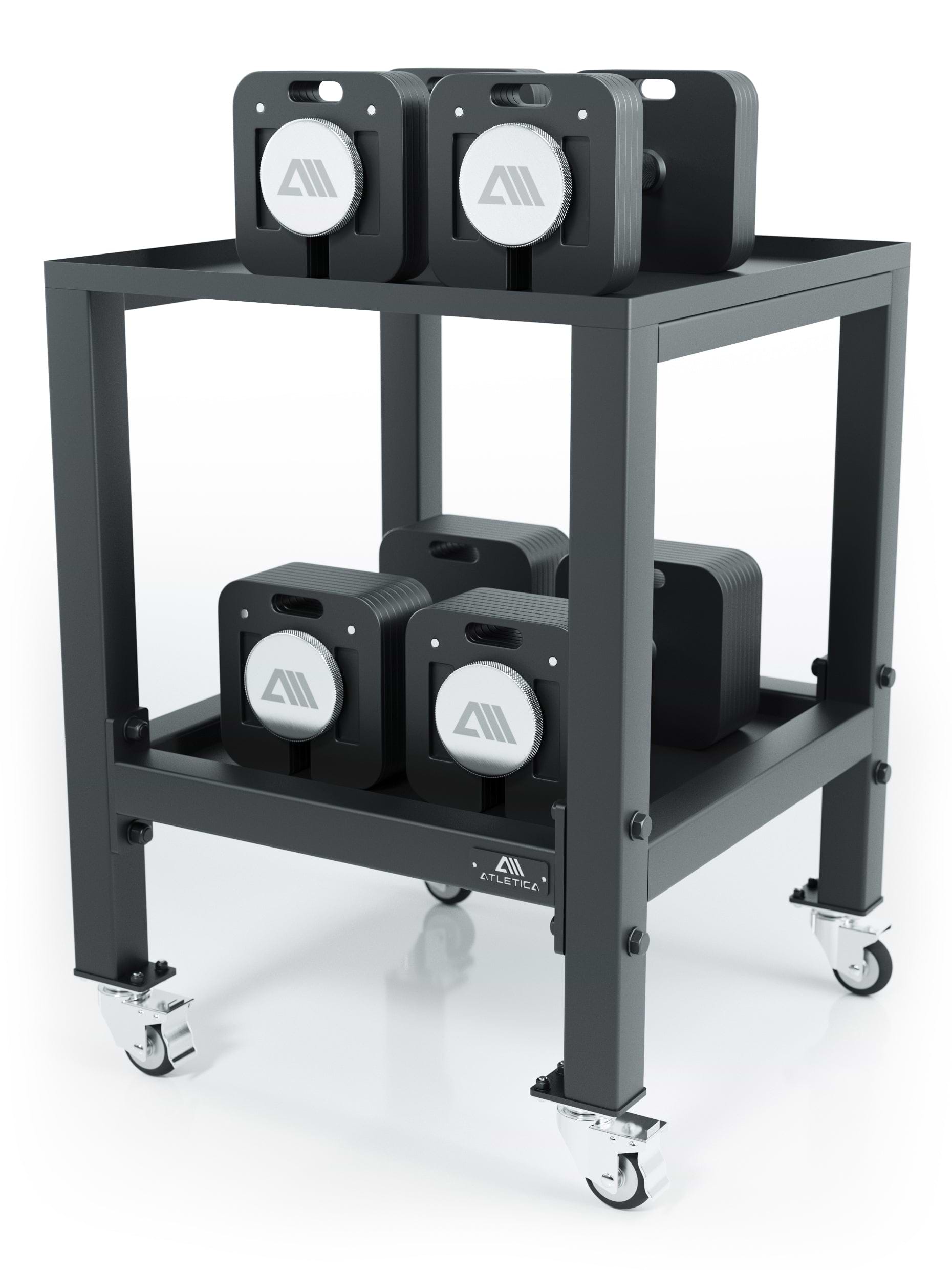 Die QUAD Hantelanlage von Atletica ist eine rundum durchdachte und hochwertig verarbeitete Aufbewahrungslösung fürs Homegym oder Studio. Ich nutze sie hauptsächlich zur ordentlichen Lagerung meiner Kettlebells, Kurzhanteln und weiterem Equipment – und sie macht genau das was sie soll: stabil stehen, gut aussehen und alles aufgeräumt halten. Durch die stabilen Rollen lässt sich die Hantelablage leicht verschieben. Die Rollen haben die passende Breite, sodass die Gummimatten nicht verrutschen, wenn man drüber rollt.