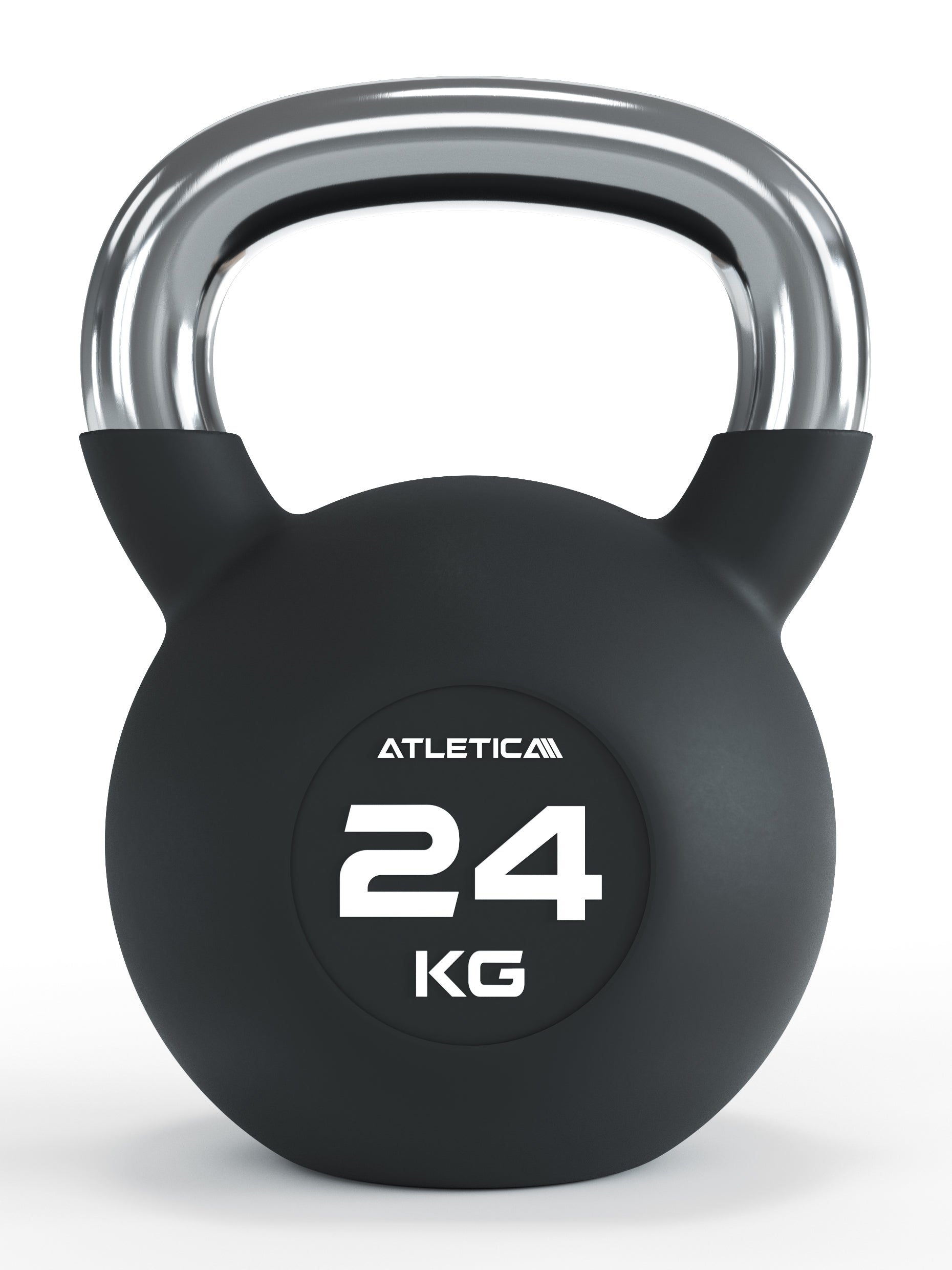 Rubberen Kettlebell met Chroomgreep | Premium Staallegering | Professionele Kwaliteit | Functionele Full-Body Training
