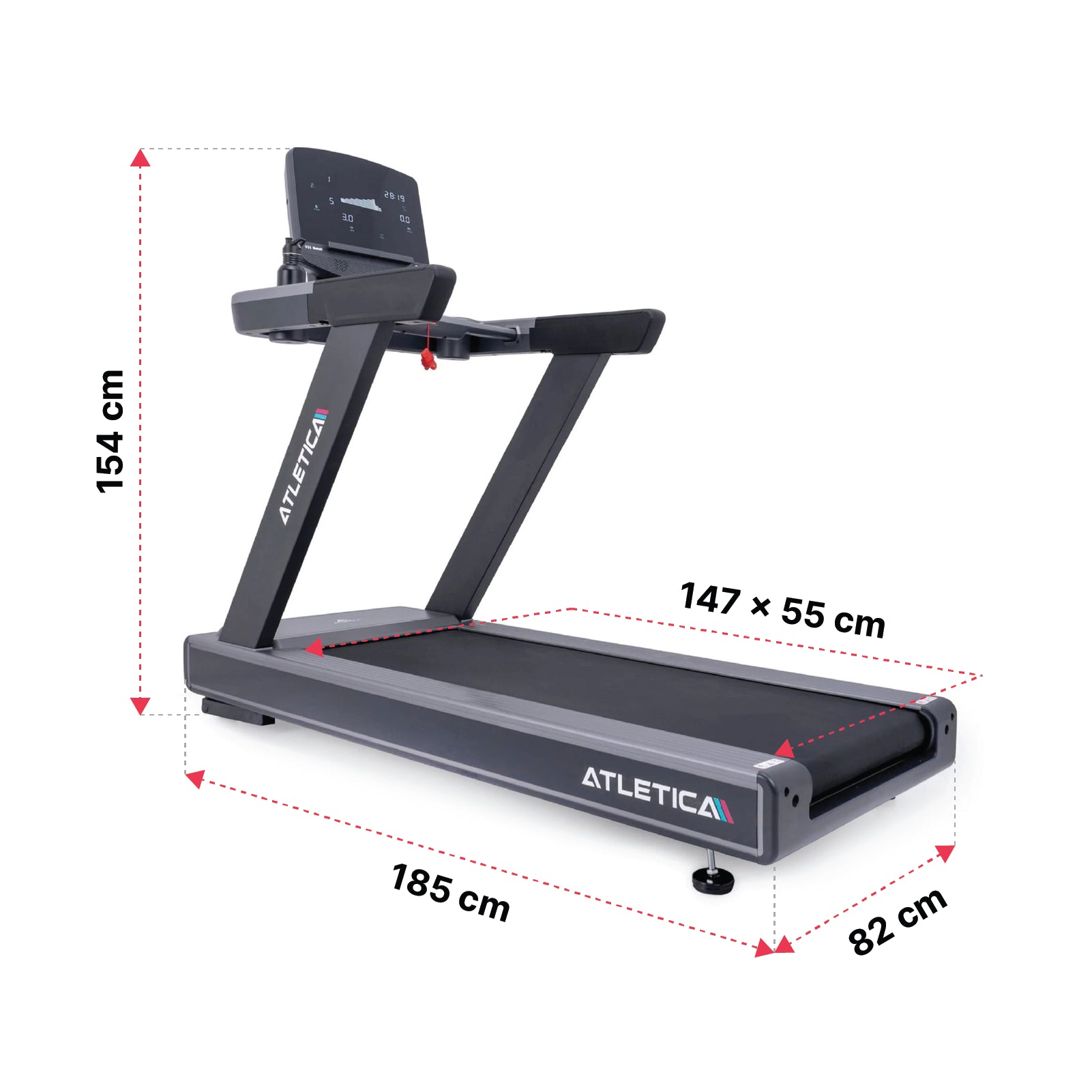 | Vereiste plafondhoogte | Jouw lichaamslengte + 18 cm hoogte loopvlak + 7 cm spronghoogte tijdens het hardlopen = minimale plafondhoogte |