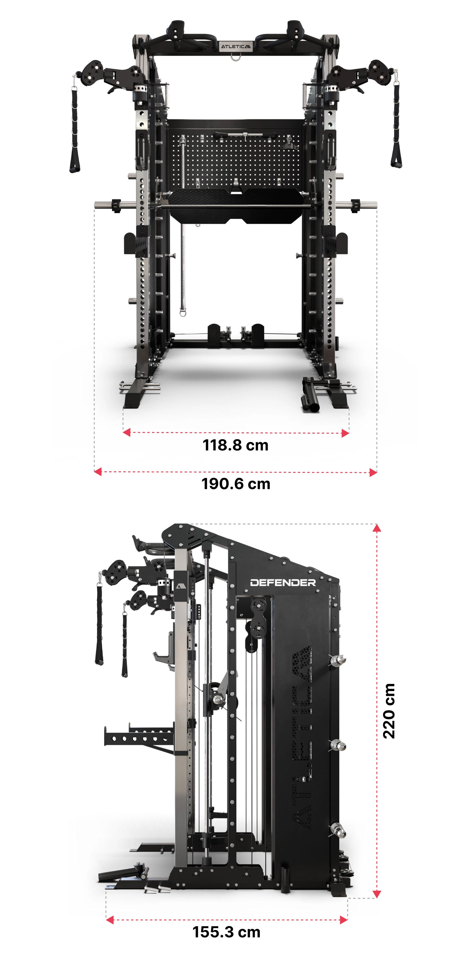 | Akcesoria | Drążek do wyciągu, Krótki gryf, Uchwyt Landmine, Trzpienie na gumy, Platforma do wiosłowania/Podnóżek, Uchwyty jednoręczne, Opaska na kostkę, Lina na triceps, Moduł suwnicy na nogi |