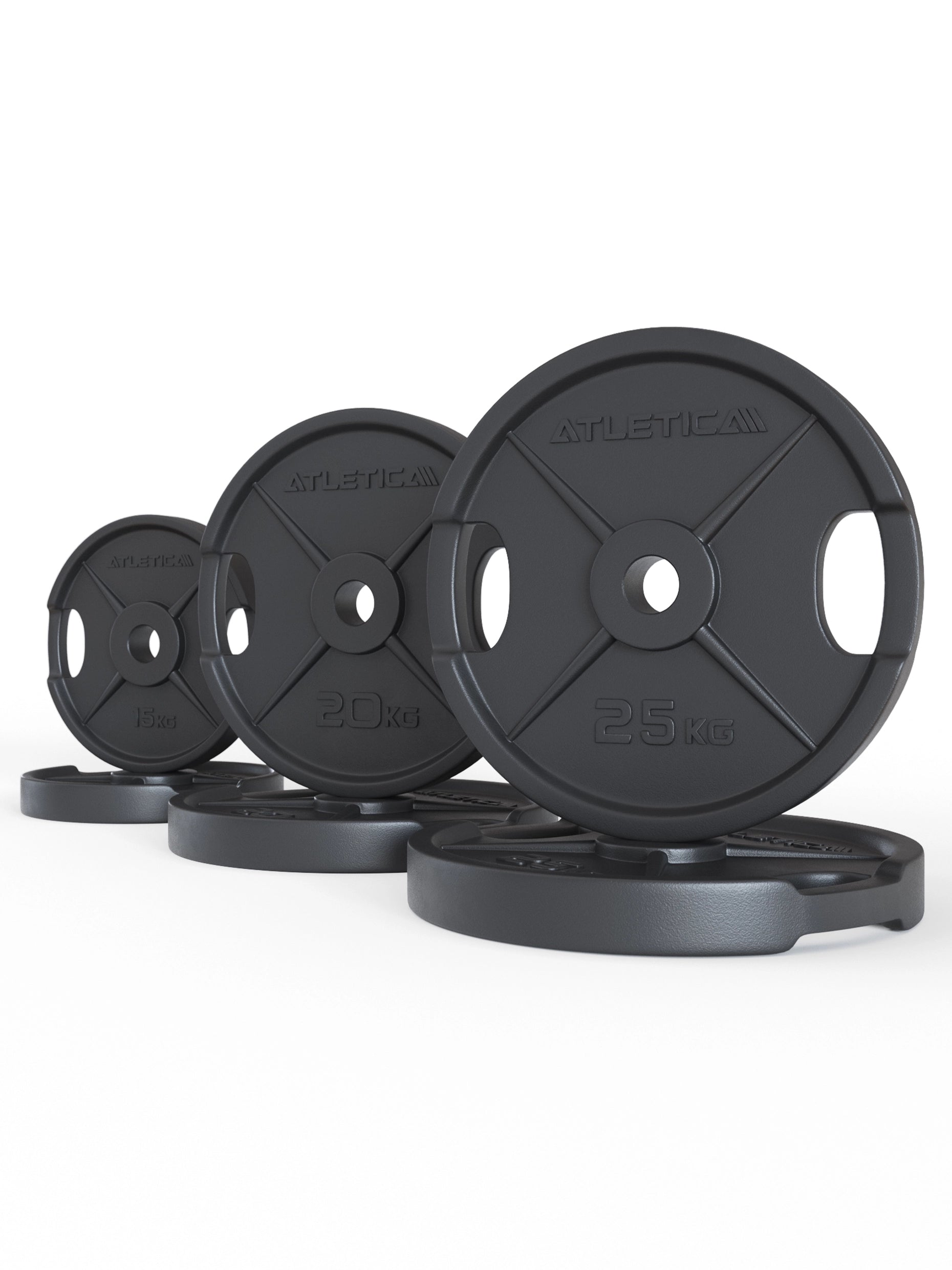 Eisen der Klasse 30, sind diese Platten kratz- und korrosionsbeständig. Integrierte Grifflöcher und klare Kilogramm-Markierungen sorgen für eine sichere und einfache Handhabung.