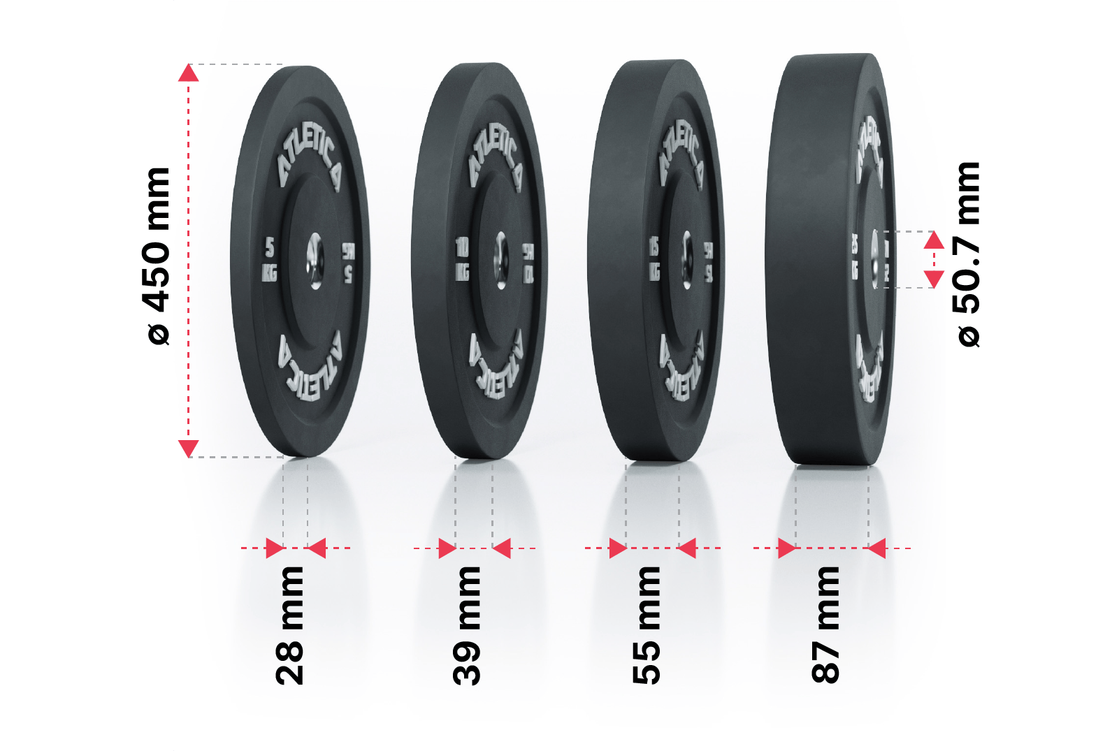 Alle Gewichtsstufen weisen einen Durchmesser von 45 cm auf - Lagerung wird vereinfacht.
