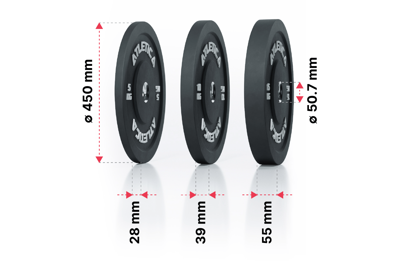 Alle Gewichtsstufen weisen einen Durchmesser von 45 cm auf - Lagerung wird vereinfacht.
