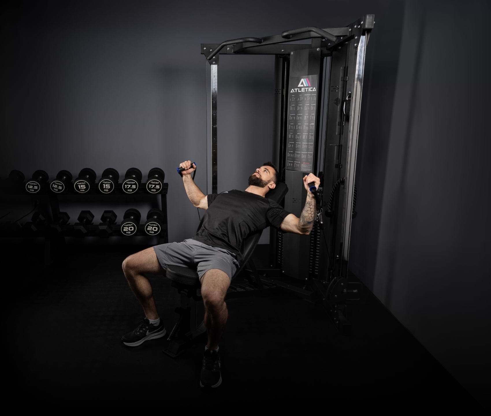 Träning på en kabelmaskin ger konstant muskelspänning under hela rörelsen, främjar koordination och erbjuder stor variation av övningar. Motståndet kan dessutom justeras individuellt, vilket passar både nybörjare och avancerade.