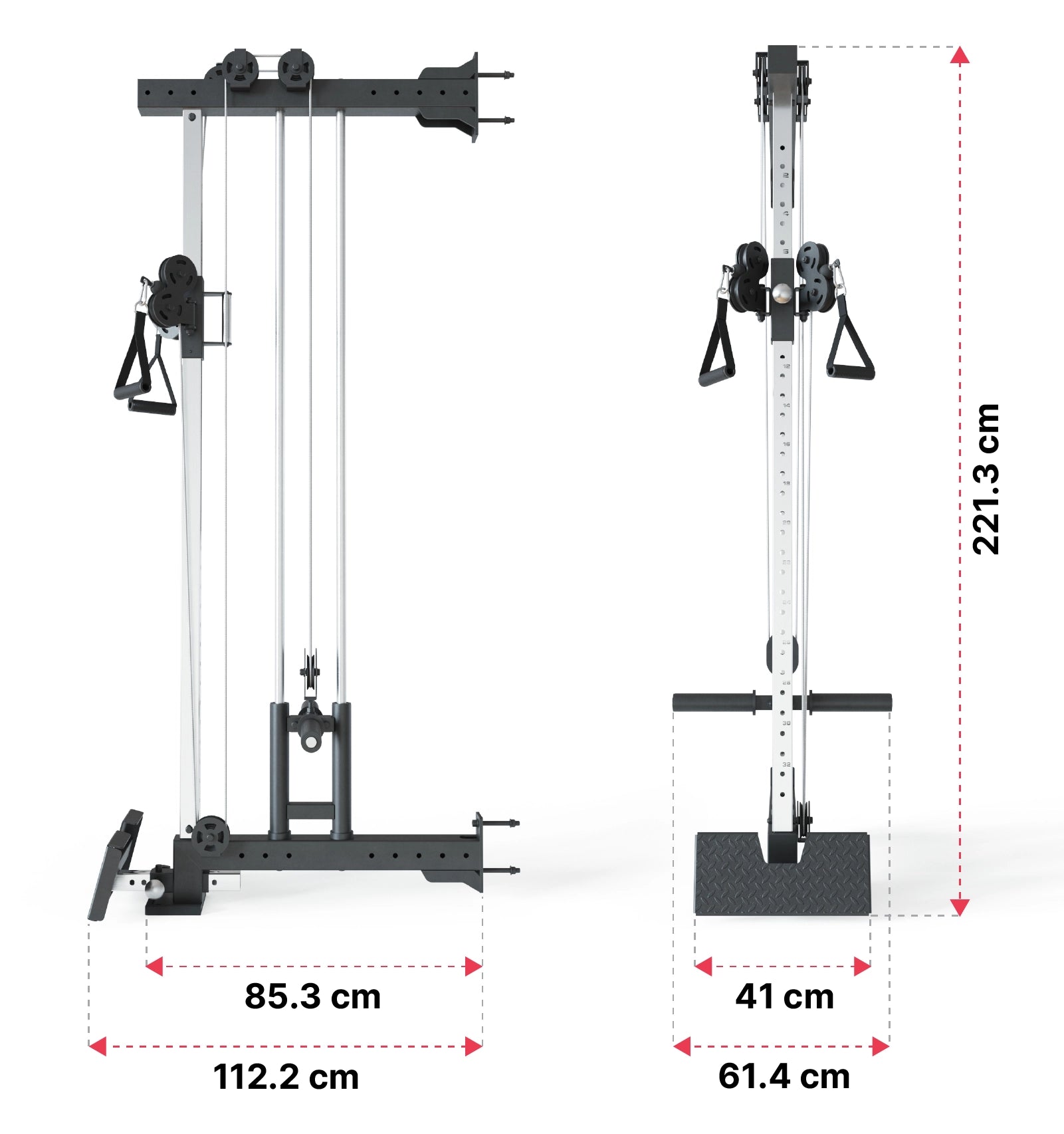 - Detta är den platsbesparande designen av en cable cross, vilket gör den till ett utmärkt komplement för mindre hemmagym.
