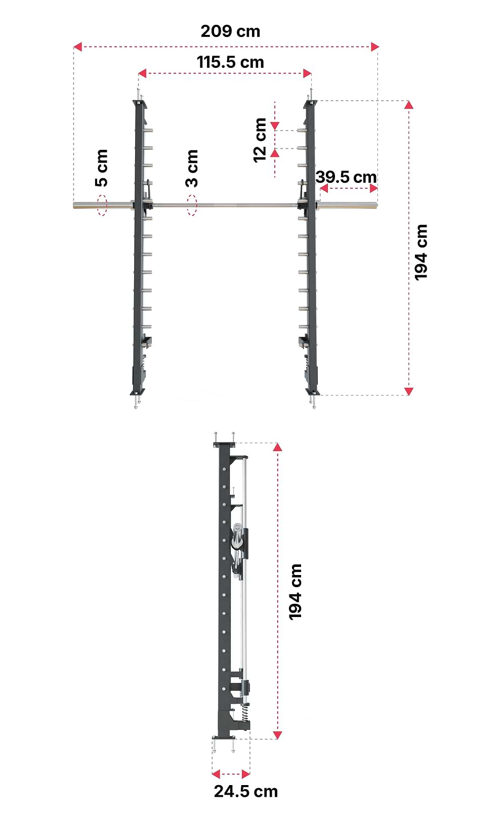 - Smith Machine kan fritt monteras på ett R8 Power Rack Upright (framsida eller baksida), med en Cross Bar som bas